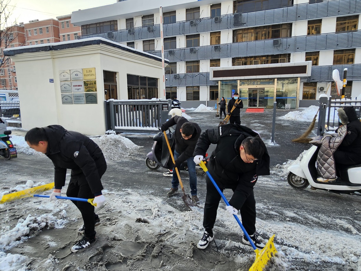搶干會(huì)干巧勁足。“這塊用雪鏟推就行”“那邊不需要掃,直接撒融雪劑”“換這個(gè),更省力”,掃雪現(xiàn)場,大家齊心協(xié)力,組織有序,紛紛施展出自己的“巧勁”。有的員工用鐵鍬鏟雪,有的用掃帚清掃,還有的負(fù)責(zé)運(yùn)輸積雪。一時(shí)間,院內(nèi)響起“叮叮當(dāng)當(dāng)”了鏟雪聲、掃雪聲,匯成了一首團(tuán)結(jié)協(xié)作、搶干會(huì)干的的贊歌。