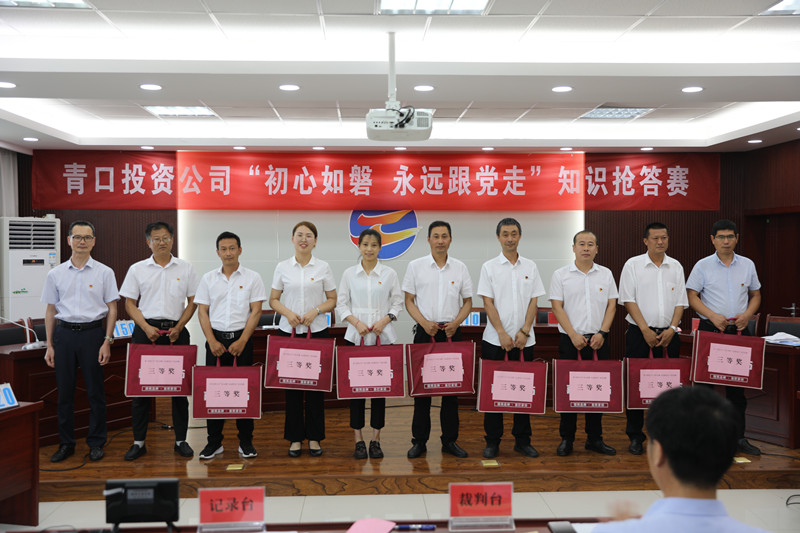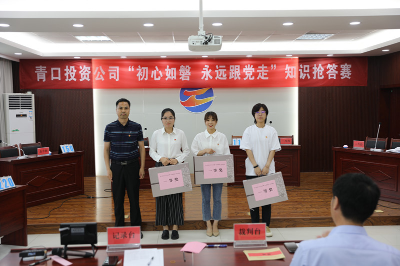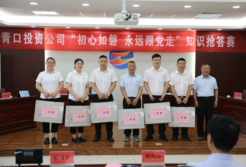 為增強廣大黨員對黨的認(rèn)識,激發(fā)黨員對黨建知識的學(xué)習(xí)熱情,6月27日下午,青口公司舉辦“初心如磐 永遠(yuǎn)跟黨走”知識搶答賽。公司黨委副書記、工會主席梁永,副總經(jīng)理楊守明,紀(jì)委書記朱文兵,總經(jīng)理助理楊青松以及各單位黨政負(fù)責(zé)人、機關(guān)全體黨員到場觀看。