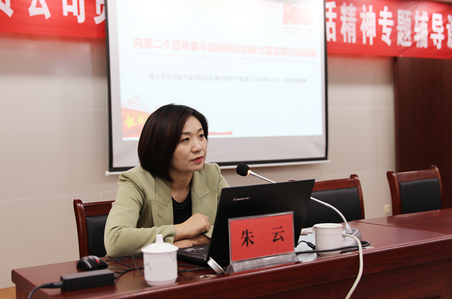 為了深入學(xué)習(xí)貫徹習(xí)近平總書(shū)記在慶祝建黨100周年大會(huì)上的重要講話精神,進(jìn)一步教育引導(dǎo)全體黨員干部學(xué)黨史、悟思想、辦實(shí)事、開(kāi)新局,不斷從黨史中領(lǐng)悟前進(jìn)的智慧和力量。10月21日下午,青口公司舉辦貫徹建黨100周年講話精神專題輔導(dǎo)課,邀請(qǐng)市委黨校法政教研室主任,黨史學(xué)習(xí)教育市委宣講團(tuán)成員朱云同志作專題輔導(dǎo)課。公司領(lǐng)導(dǎo)班子成員、各單位黨政工負(fù)責(zé)人、機(jī)關(guān)全體管理人員以及基層單位在職黨員參加。會(huì)議由黨委副書(shū)記梁永主持。