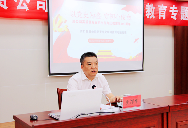 黨的百年華誕來臨之際,6月30日上午,青口公司黨委書記史祥平以《以黨史為鑒 守初心使命 用公司高質(zhì)量發(fā)展擔當作為慶祝建黨100周年》為題,為公司黨員干部上了一堂生動的黨史學習教育專題黨課。集團公司黨委黨史學習教育第一指導(dǎo)組組長、集團紀委副書記王建松應(yīng)邀參加會議。