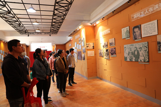 ? ?全體青年在講解員同志的帶領(lǐng)下拾階而上,認(rèn)真聆聽學(xué)習(xí)了抗日時(shí)期革命先烈為民族獨(dú)立與解放拋頭顱、灑熱血的英雄事跡。青年代表向革命先烈敬獻(xiàn)了花籃,向烈士冢三鞠躬默哀,緬懷先烈。隨后,在烈士冢前,面對(duì)黨旗,青年黨員舉起右手重溫入黨誓詞。