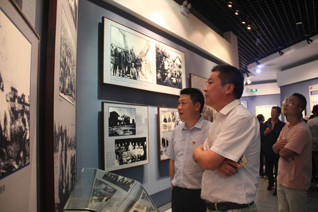 來(lái)到紀(jì)念館,醒目的藍(lán)白相間的 “N4A”臂章圖案,鑲嵌在展廳正門上方,兩側(cè)旗行的花崗石陰雕畫(huà),藝術(shù)地再現(xiàn)了新四軍魚(yú)八路軍在白駒獅子口勝利會(huì)師和皖南事變后新四軍在鹽城重建軍部的歷史場(chǎng)面。進(jìn)入館中,黨員們一路認(rèn)真傾聽(tīng)講解員講述新四軍的光輝戰(zhàn)斗歷程。1000多幅照片、大批文物史料、一幅幅還原歷史的逼真場(chǎng)景將我們帶回到那個(gè)戰(zhàn)火紛爭(zhēng)的年代,體會(huì)革命先烈在崢嶸歲月中頑強(qiáng)抗擊日軍的英雄本色和為中國(guó)革命事業(yè)不怕?tīng)奚?、無(wú)私奉獻(xiàn)的革命情懷。在新四軍領(lǐng)導(dǎo)的雕像前,黨員們嚴(yán)肅認(rèn)真,面朝黨旗,重溫入黨宣誓。
