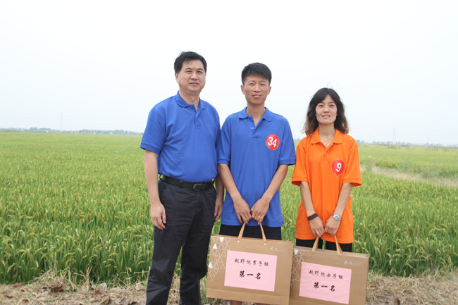 ? ? ? ??上午 9:00比賽正式開始,運動員們在田間小路你追我趕、爭相向前,跑道旁啦啦隊的加油吶喊聲此起彼伏,工作人員認真負責,計時、計分、為運動員送水,也忙得不亦樂乎。經(jīng)過激烈的角逐,機關(guān)代表隊范磊獲得男子組第一名,米業(yè)中心代表隊臧守珍獲得女子組第一名。