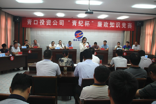 ? ? ??8月28日下午,一場別開生面的“青紀杯”廉政知識競賽在青口公司舉行。公司領(lǐng)導(dǎo)班子親臨現(xiàn)場為選手們加油鼓勁,各部室負責(zé)人及來自公司各單位、部門的60余名職工到場觀看了整場比賽。賽前,由黨委書記胡傳法帶頭,全體在崗黨員在廉政誓詞上進行簽名。