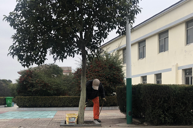 隨著氣溫的逐漸下降,場區(qū)植物開始進入冬季生長休眠期,為強化綠化養(yǎng)護管理,全力確保綠化植物安全越冬,近日,冬季樹木刷白防護工作全面啟動。服務中心利用天氣晴好時機對場區(qū)區(qū)域內(nèi)的樹木進行涂白防護。樹干刷一層“涂白劑”是入冬前為樹木進行養(yǎng)護管理的一項重要內(nèi)容,不僅可以減少水分蒸發(fā),還可以增強樹木的防凍能力、防御病蟲害的滋生,具有殺菌的作用,為樹木來年萌發(fā)打基礎。