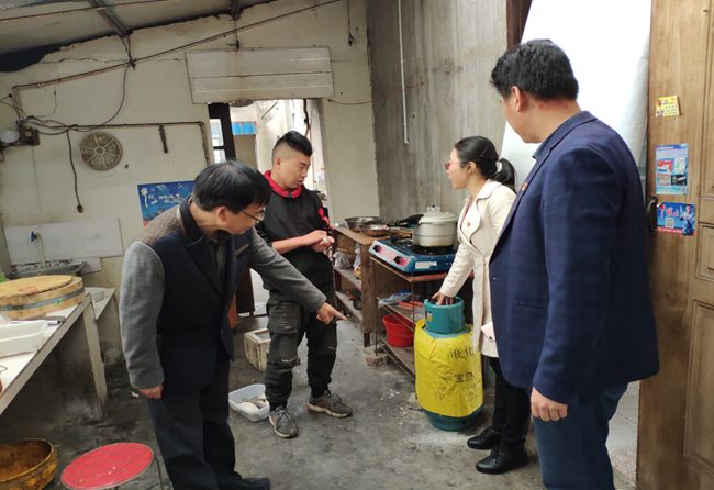 2019年10月14日上午,服務(wù)中心聯(lián)合社區(qū)工作人員對(duì)轄區(qū)餐飲店進(jìn)行液化燃?xì)獍踩珜m?xiàng)檢查,仔細(xì)檢查液化氣鋼瓶、管道、減壓閥及燃?xì)庠畎踩褂们闆r,要求從業(yè)人員一定要按照規(guī)定操作流程正確使用燃?xì)庠O(shè)備,并告知他們對(duì)銹蝕、過(guò)期、老化的燃?xì)庠O(shè)備部件必須及時(shí)更新更換,以確保用氣的安全。(徐永平)