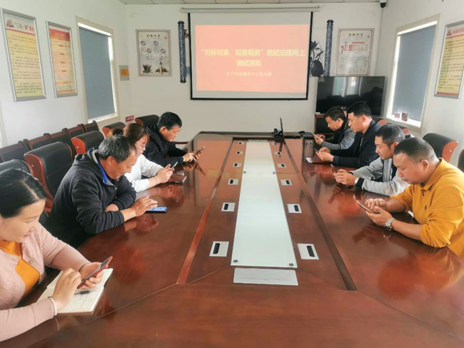 為推進(jìn)“對標(biāo)對表、知責(zé)明責(zé)”活動開展,引導(dǎo)黨員干部學(xué)黨紀(jì)、知條規(guī)、明底線,近日,生產(chǎn)生活服務(wù)中心黨支部組織黨員干部、管理人員參與黨規(guī)黨紀(jì)網(wǎng)上答題活動。(霍中波)