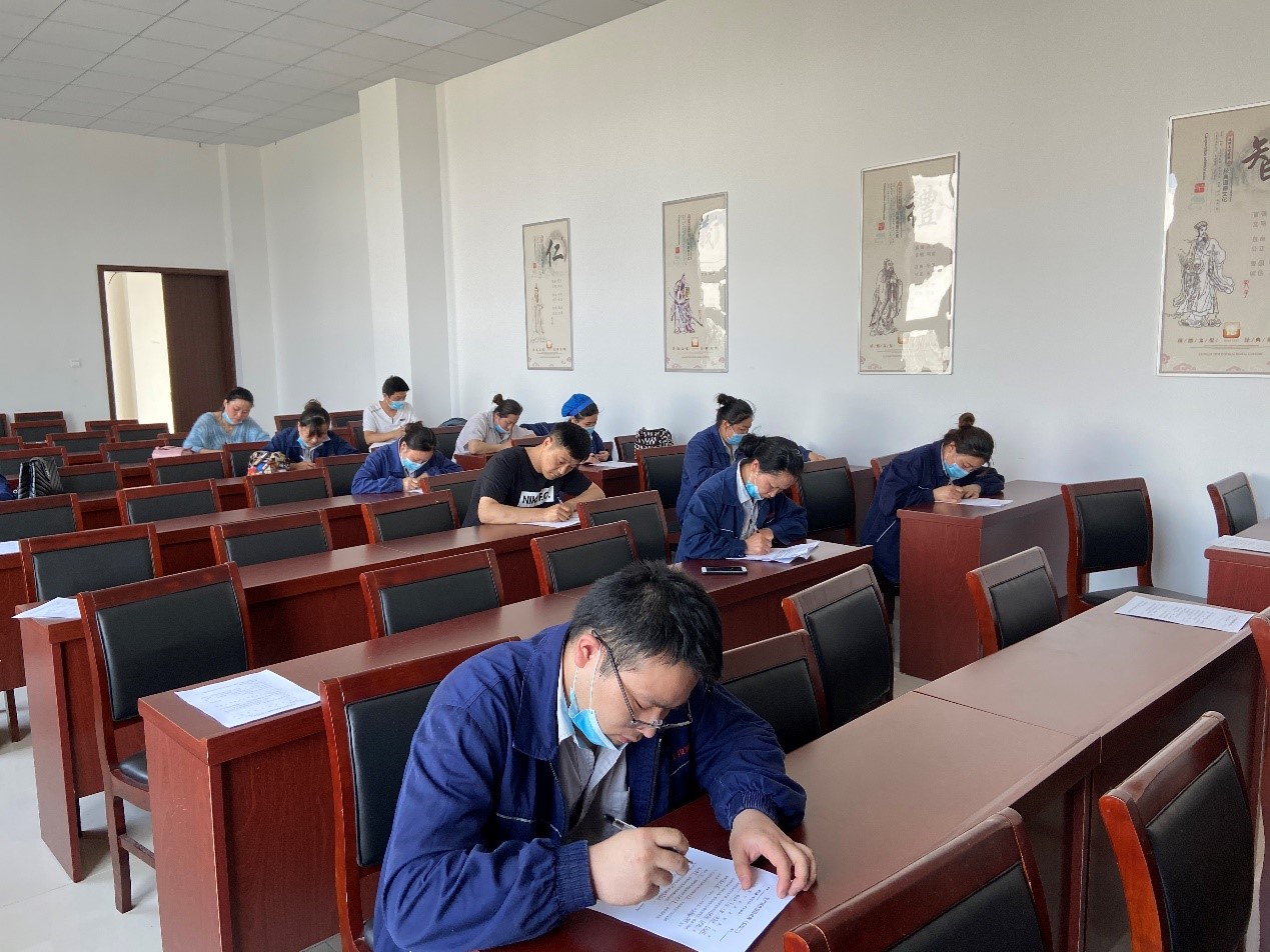 截至5月27日,生產(chǎn)設(shè)備部3個生產(chǎn)班組已全部順利完成后紡作業(yè)培訓(xùn),進入后紡操作技能筆試階段。(圖為5月27日上午,生產(chǎn)丙班后紡員工參加后紡操作技能筆試考核。)