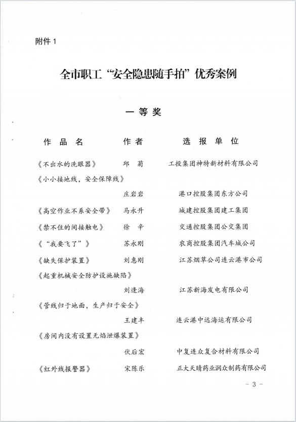 近日,市“安康杯”“安全隱患隨手拍”活動(dòng)獲獎(jiǎng)作品揭曉,公司員工邱菊參賽作品《不出水的洗眼器》獲得一等獎(jiǎng),陳士亮參賽作品《無用的燃?xì)鈭?bào)警器》獲得二等獎(jiǎng)。(神特宣)