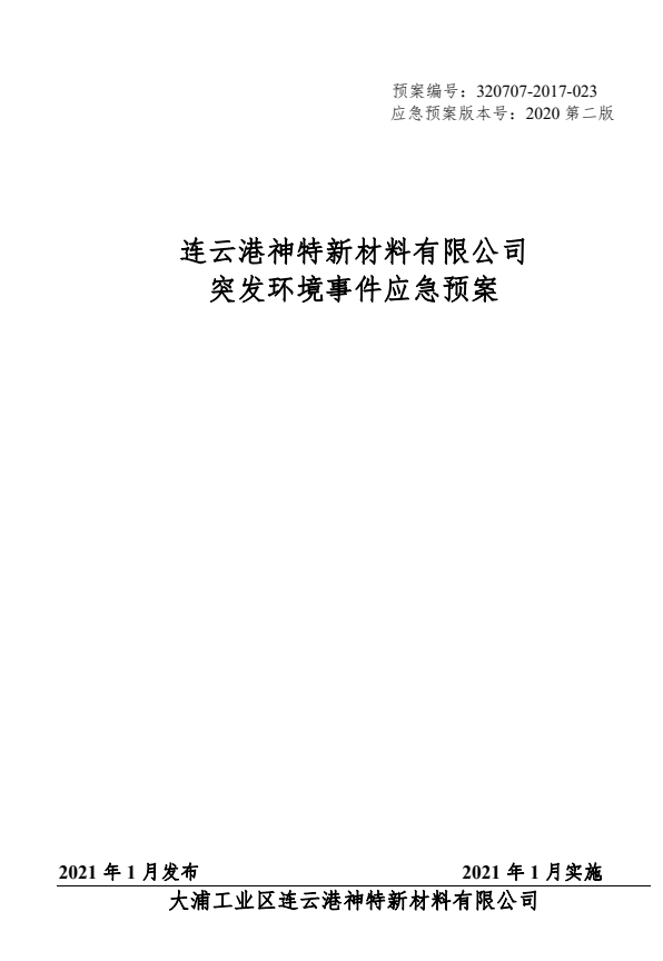神特公司突發(fā)環(huán)境事件應(yīng)急預(yù)案