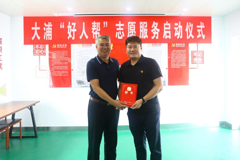 公司黨委書(shū)記、董事長(zhǎng)王德志為“中國(guó)好人”常皓同志頒發(fā)了聘書(shū),聘請(qǐng)常皓同志擔(dān)任“好人幫”志愿服務(wù)隊(duì)名譽(yù)輔導(dǎo)員。黨委副書(shū)記、工會(huì)主席、副總經(jīng)理傅健向“好人幫”志愿服務(wù)隊(duì)進(jìn)行了授旗,大浦分公司負(fù)責(zé)人代表“好人幫”志愿服務(wù)隊(duì)宣讀了《爭(zhēng)當(dāng)好人倡議書(shū)》,三名“好人幫”志愿服務(wù)隊(duì)成員與幫扶對(duì)象結(jié)對(duì)并簽訂了幫扶協(xié)議書(shū)。