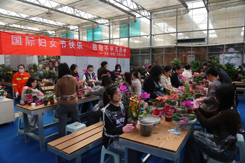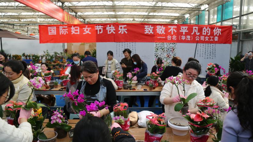 ? ? 情暖三月,巾幗芳菲相競妍。在“三八”國際婦女節(jié)來臨之際,為展現(xiàn)公司女干靚麗風(fēng)采,豐富文化生活,3月6日下午,臺北(華茂)公司工會組織50余名女職工代表在市振興花卉城開展“國際婦女節(jié)快樂 致敬不平凡的你”慶婦女節(jié)插花活動,展現(xiàn)新時(shí)代女性風(fēng)采。