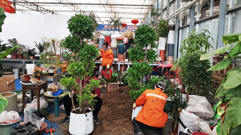 2月24日,走進(jìn)位于振興花卉城的華茂園藝項目部,室外冰天雪地,室內(nèi)忙碌的身影不斷穿梭……有的在配土上盆、有的在修剪養(yǎng)護(hù)、有的在擦洗裝飾,員工們分工協(xié)作、團(tuán)結(jié)一心、有條不紊地進(jìn)行花卉綠植的入盆及制作,開足馬力增效益。