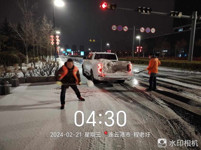 ? ? 2月20日晚,港城迎來又一輪降雪,低溫雨雪冰凍天氣對(duì)城市道路交通和市民出行產(chǎn)生較大影響。為確保雪天道路暢通及市民出行安全,綠化分公司聞雪而動(dòng),從2月19日晚開始,組織應(yīng)急隊(duì)伍連夜行動(dòng),在花果山大道、黃海大道等開發(fā)區(qū)主干道拋撒融雪劑,開展清雪除冰工作,掀起一場(chǎng)齊心協(xié)力、團(tuán)結(jié)互助的戰(zhàn)風(fēng)雪、保通暢行動(dòng)。