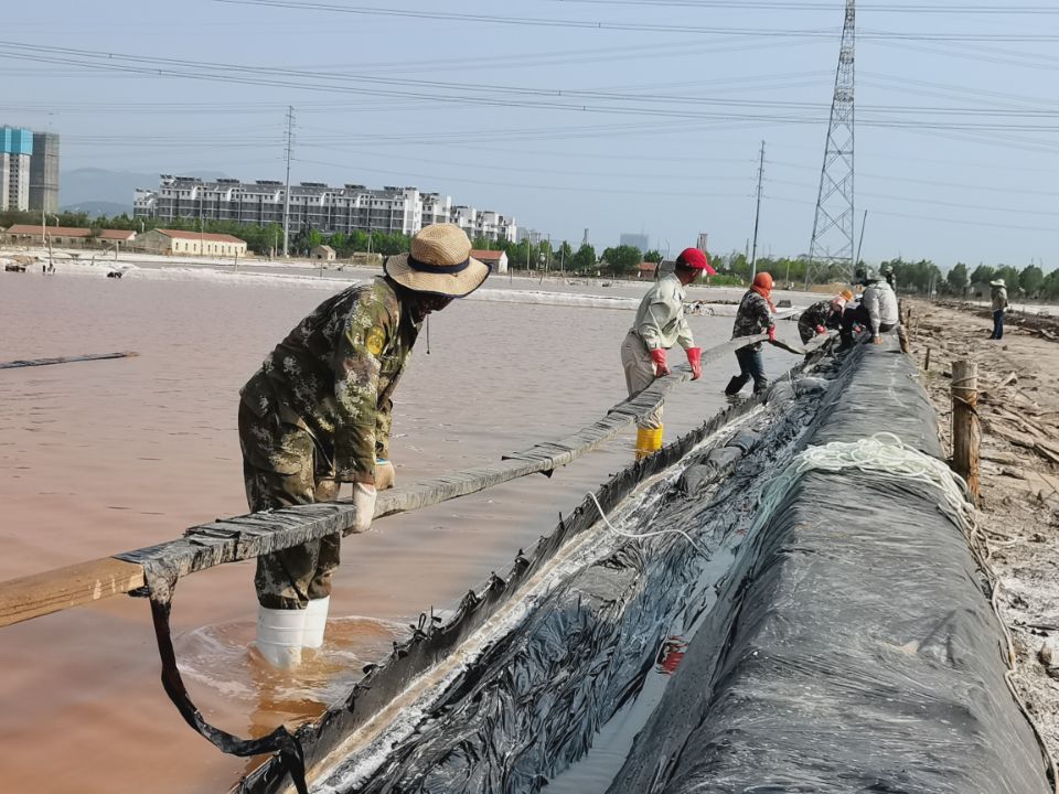 礦鹽生產班組提前謀劃原鹽集運前的準備工作。2022年秋扒鹽已經順利落下帷幕,工人們利用收鹽后的空隙對鹽池板進行修整、整理收放系統(tǒng)以及將扒鹽機械進行保養(yǎng)入庫等等。同時,修整運鹽主干道,地基較軟處以鋼板鋪墊,確保運鹽車輛安全通過。排查廩基周圍高低壓線路,在作業(yè)的同時堅守安全生產底線。等待天氣轉好,將立即進行原鹽集運。