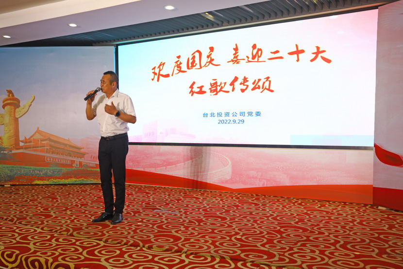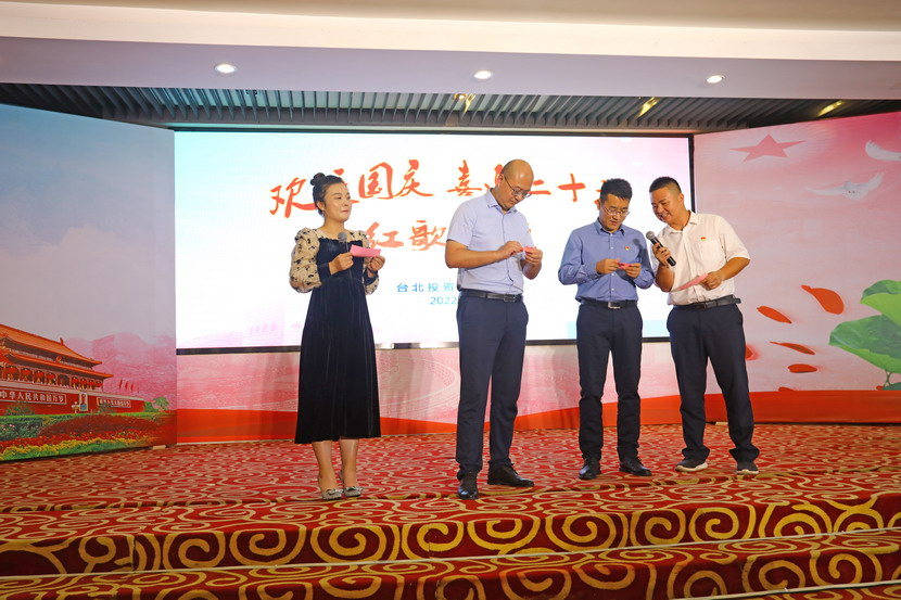 為慶祝新中國成立73周年,9月29日下午,臺(tái)北投資公司舉辦了“歡度國慶·喜迎二十大”紅歌傳頌會(huì),來自各直屬單位和機(jī)關(guān)廣大員工匯聚一堂,用最甜美的聲音歌唱祖國、用最真摯的詩詞贊頌祖國,現(xiàn)場(chǎng)亮點(diǎn)頻現(xiàn)、精彩紛呈。