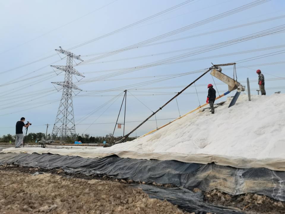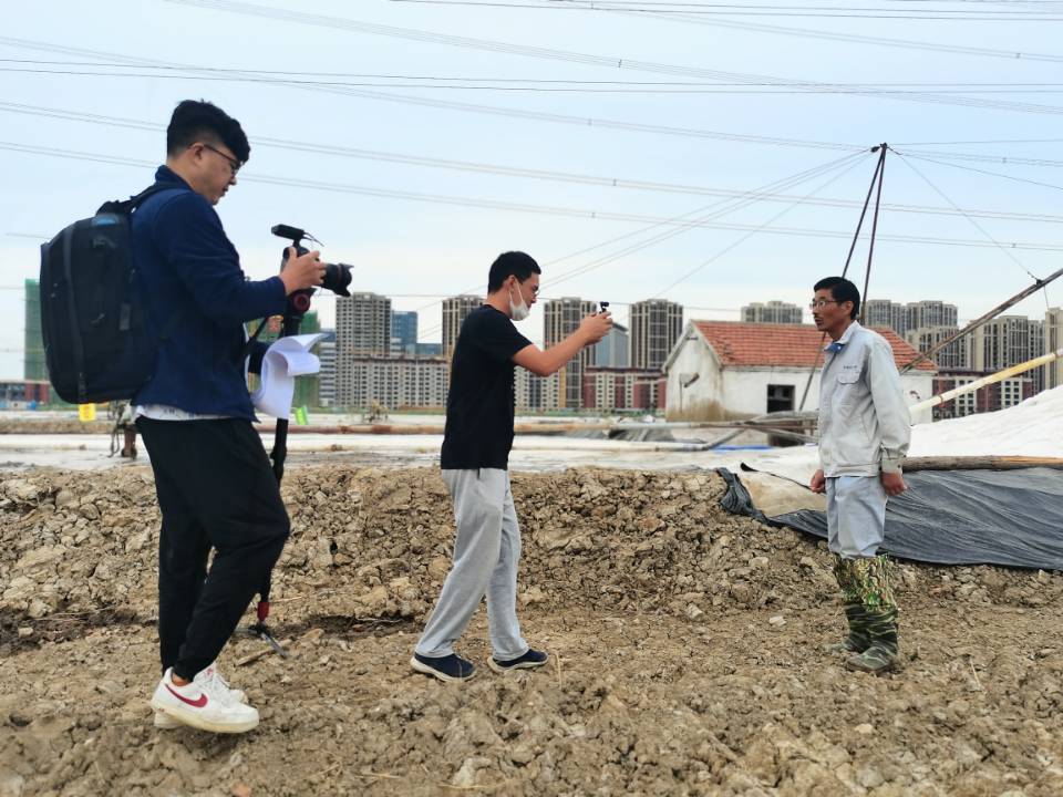 在灘頭一線,采訪組一路走,一路問,與陪同人員了解鹽場(chǎng)歷史,和作業(yè)人員溝通制鹽工藝,時(shí)不時(shí)的拿起單反相機(jī),咔咔咔的按著快門,以不同視角的圖片、視頻等宣傳媒介記錄下鹽場(chǎng)最生動(dòng)、最有特色的畫面。