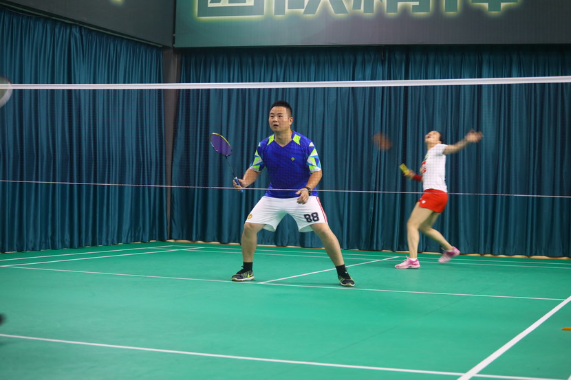 下午進行的混雙淘汰賽迎戰(zhàn)實力強勁的對手集團機關(guān)、神特、氨綸公司隊,我臺北公司隊打出亮眼表現(xiàn)。比賽中,隊員毫不退讓,盡力抓住每個得分機會。在混雙“雙保險”失利一組的情況下,另一對選手張海寧、袁桂芹穩(wěn)扎穩(wěn)打,逐漸打出了氣勢,后場高球、網(wǎng)前輕吊、大力扣殺……他們以犀利的進攻直下三城,成功殺入決賽。