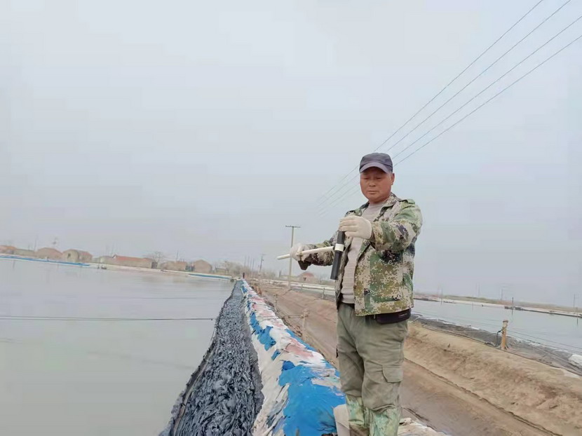 2021年,他服從公司生產機制的轉換,被安排到海濱三組18號灘作為領灘手,負責鈣液生產。為了不浪費每一毫米的蒸發(fā)量,每天天剛蒙蒙亮,就能看見他在縱橫阡陌的鹽田間穿梭,根據灘田結構、針對不同季節(jié)確定走水路線,每天重復著調節(jié)鈣液、修整溝堰、修補塑布的工作,遇到大雨,他就不回家,守在灘上,及時把鈣液按照不同濃度引進鹵臺、鹵窖,雨水結束,第一時間把灘面淡水排掉,將鈣液回引進行晾曬。在生產面積僅有311畝的情況下,他每天要走3萬-4萬步,不僅對他自己的生產單元,對整片鈣液生產單元了如指掌,有多少閘門,多少電線桿,都了然于心。全年下來,生產鈣液28000方,在12個鈣液生產單元中名列前茅,領先超9000方,實至名歸的生產標兵。