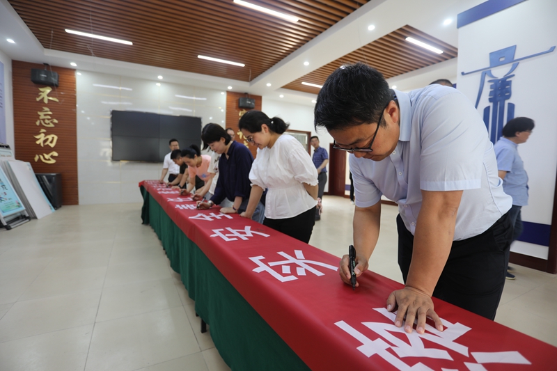 6月11日上午11時(shí),在臺北投資公司廉政文化教育室,公司機(jī)關(guān)全體員工一起舉起右手,一字一句的宣誓,字字鏗鏘有力,擲地有聲。用錚錚誓言銘記安全責(zé)任,牢筑安全生產(chǎn)防線,為全力抓好公司的安全工作保駕護(hù)航,向黨的一百年華誕獻(xiàn)禮。
