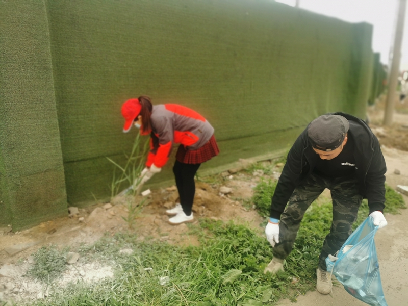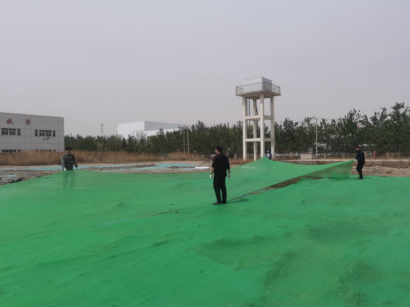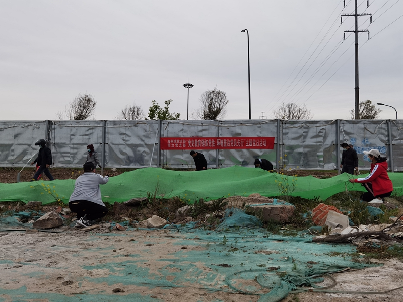 翔立分公司黨支部攜手海州灣公司黨支部對公司的車站小灘進行環(huán)境整治,為裸露在外的土地進行防塵網(wǎng)鋪設。