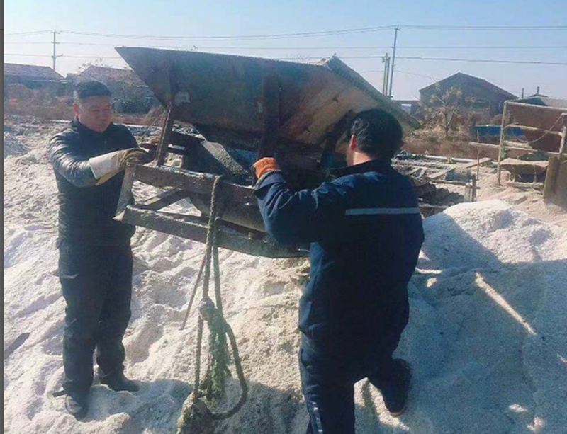 在海洲灣公司的海濱三組原鹽集運現(xiàn)場,過河原鹽皮帶機滾籠上的鋼筋因機械疲勞斷裂造成無法運轉(zhuǎn)。為了不影響原鹽集運,接到通知后,機械班維修人員冒著刺骨嚴(yán)寒迅速攜帶電焊機等維修工具趕到現(xiàn)場。露天下,檢查拆卸、焊接加固、安裝調(diào)試一氣呵成,很快機械又重新運轉(zhuǎn)起來。