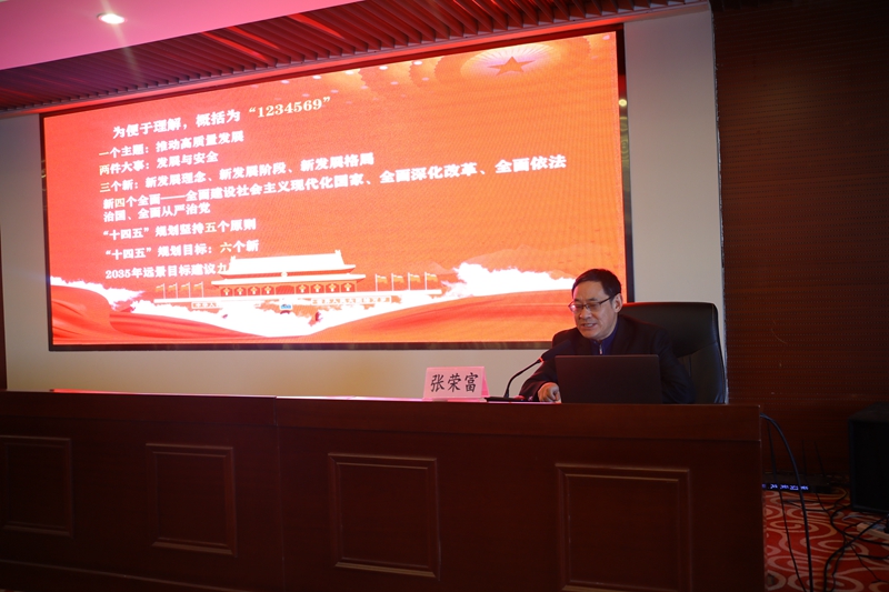 下半場,張校長從一個主題,推動高質量發(fā)展;兩件大事,發(fā)展與安全;三個新,新發(fā)展理念、新發(fā)展階段、新發(fā)展格局;新四個全面,全面建設社會主義現(xiàn)代化國家、全面深化改革、全面依法治國、全面從嚴治黨;“十四五”規(guī)劃堅持五個原則;“十四五”規(guī)劃目標,六個新;2035年遠景目標建議九項措施等九個方面解讀了全會精神的“新征程 新理念 新格局 新愿景”。