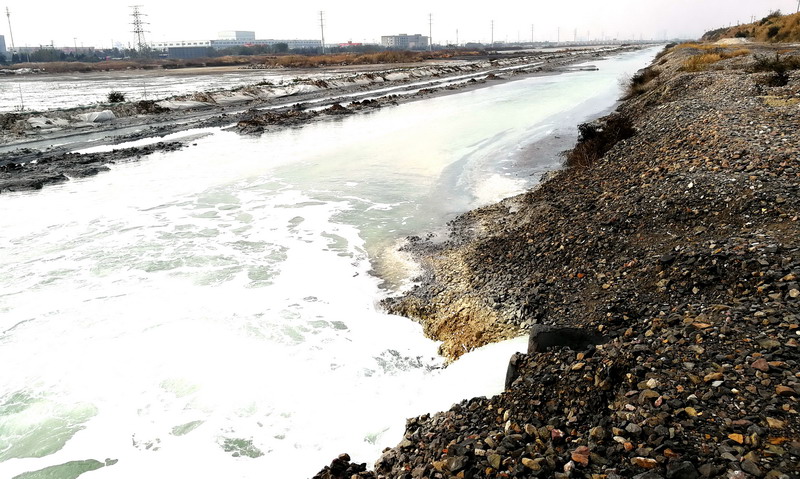 ▲鈣液原料水經(jīng)送水道引入公司復曬灘地