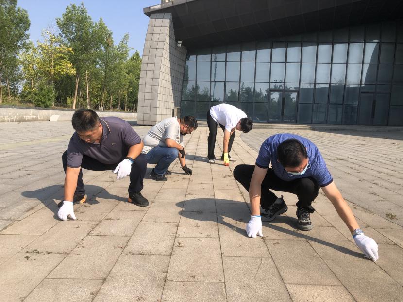 活動現(xiàn)場,黨員同志、積極分子充分展現(xiàn)了不怕臟、不怕累的精神風(fēng)貌,針對創(chuàng)智綠園內(nèi)雜草、衛(wèi)生死角等問題開展整治。創(chuàng)智綠園內(nèi)處處是同志們清理雜草的身影,構(gòu)成了一道亮麗的風(fēng)景線,經(jīng)過兩個多小時的辛勤勞動,沿途雜草被清理得干干凈凈,環(huán)境面貌煥然一新。