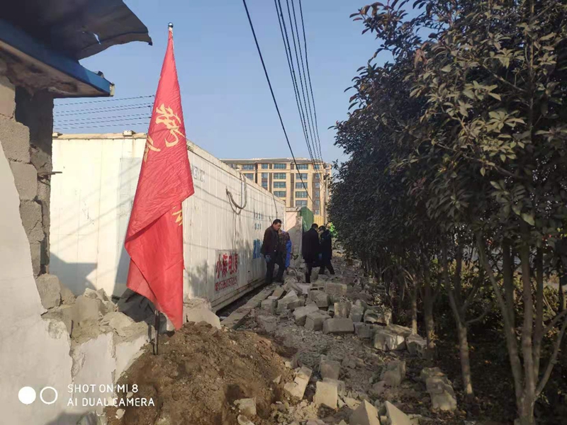 據(jù)悉,該處墻頭整體倒塌,大多數(shù)磚塊沒有受到損壞。志愿者們一塊一塊的挑選、清理、搬運,將可以回收利用的磚塊整理好,用于墻頭的修葺。水泥、沙的配比不太熟悉,天氣寒冷如何做好防凍,怎么辦?臨達(dá)公司的退休老黨員主動站了出來,為圍墻修葺工作做指導(dǎo),提供幫助。經(jīng)過兩天的奮戰(zhàn),將倒塌的墻頭修葺好,并拉好了美化綠布。