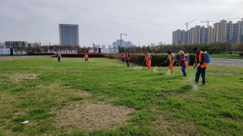 ? ? 在各大主干道、序道,養(yǎng)護(hù)工人早上七點不到就已到崗。四月份是春季升溫最快的月份,雜草也開始返青快速生長,主要是闊葉雜草中的蒲公英、薺菜、婆婆納、簇生卷耳、澤膝、黃鵪菜等,與樹木爭肥爭水,影響綠化植物的生長。養(yǎng)護(hù)工人采取以化學(xué)除草為主,人工除草為輔的方式,對雜草進(jìn)行消滅。除草不僅有利于土壤疏松、通氣、調(diào)節(jié)土溫,促進(jìn)土壤養(yǎng)分分解,便于樹木生長,同時也提高了道路景觀觀賞度。