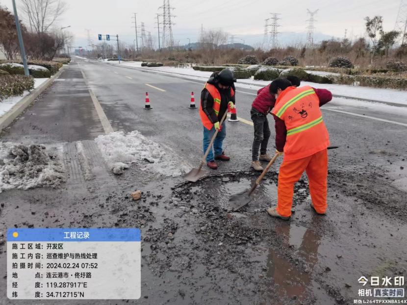 由于連續(xù)的暴雪席卷港城,使轄區(qū)道路路面遭受不同程度的凍害,出現(xiàn)坑塘、裂縫等情況,給群眾出行帶來安全隱患。盛達市政分公司于22日開始,晨起早、晚加班,開展雪后道路排患工作,快速處理雪后各項道路病害問題,為道路通行安全提供有力保障。