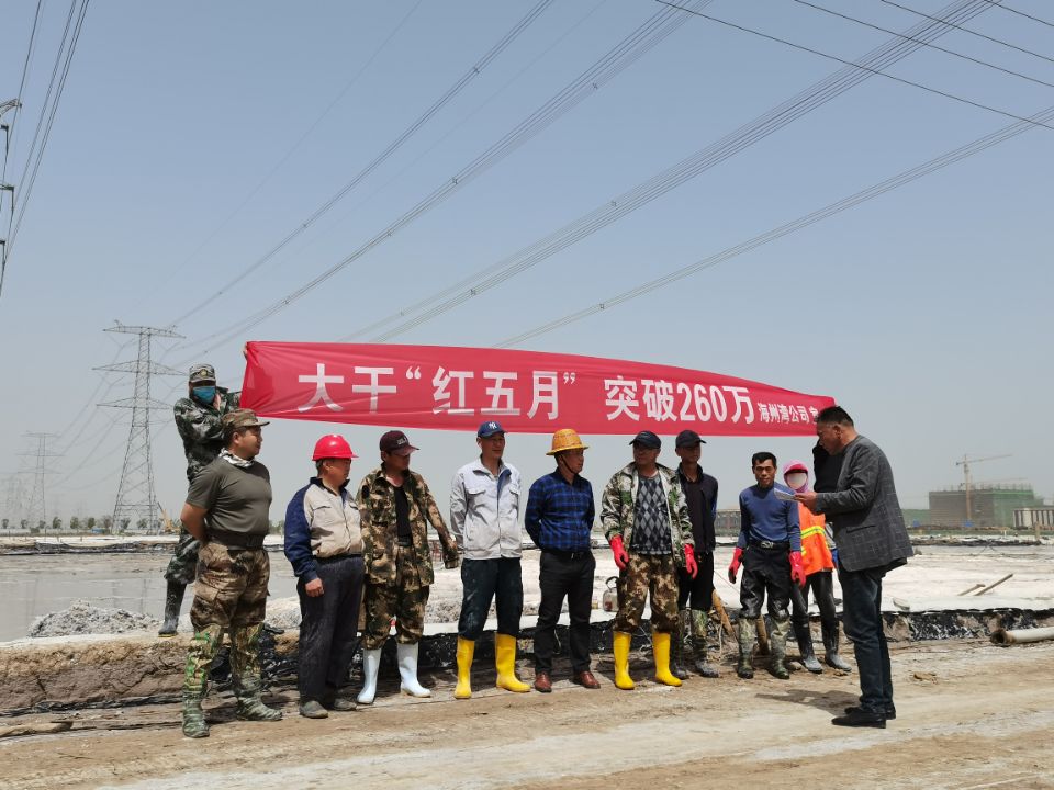 5月8日上午,海州灣公司在扒鹽現(xiàn)場,利用搶修扒鹽機械的間隙,組織當(dāng)班職工迅速傳達了投資公司“大干紅五月,再創(chuàng)新佳績”動員大會會議精神,積極宣貫投資公司政策和鹽鈣產(chǎn)業(yè)當(dāng)前面臨的嚴峻形勢,并制定公司大干紅五月小指標勞動競賽方案,開展職工勞動技能大比武,明確公司五月份經(jīng)濟指標,動員全員要團結(jié)奮進,樹立榮辱與共的集體榮譽感,進一步凝聚奮進力量,提升干群士氣,全力沖刺五月份扒鹽10000噸、排鹵60000方、實現(xiàn)營業(yè)收入260萬元的經(jīng)濟目標,掀起大干紅五月的熱潮,營造齊心協(xié)力、大干快干的良好局面。