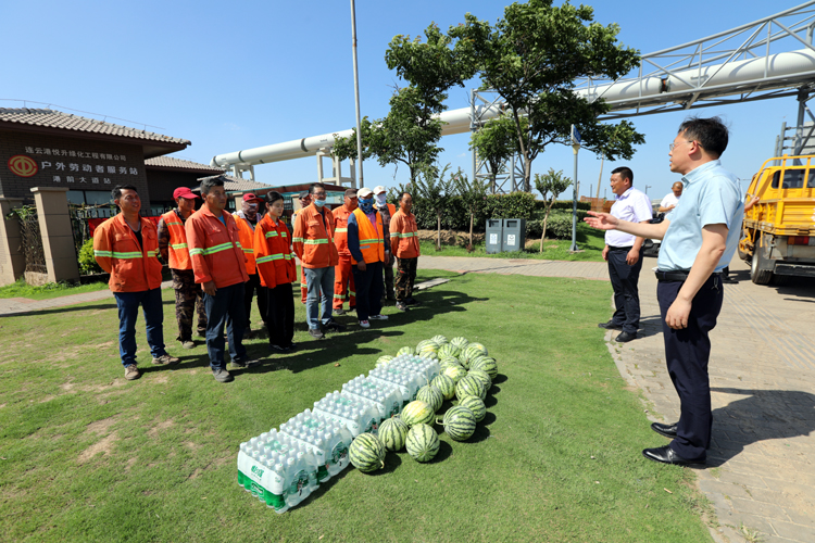 7月5日下午,投資公司黨委副書(shū)記、工會(huì)主席劉剛深入一線看望慰問(wèn)高溫作業(yè)職工,為他們送去礦泉水、西瓜等防暑降溫物品,囑咐他們調(diào)節(jié)好高溫作業(yè)時(shí)間,用好防暑降溫藥品包,確保高溫作業(yè)安全。