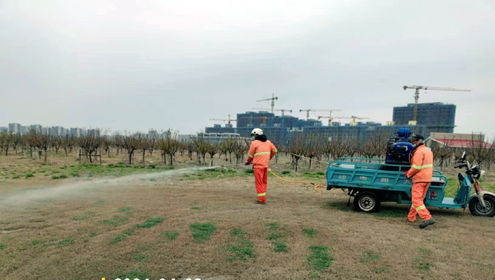 積極澆灌返青水。當(dāng)前,地溫回升快,苗木易萌芽,該班組采用“人工+機械”相結(jié)合的方式,全面啟動返青水集中澆灌工作,重點對園區(qū)喬木、果木、草坪等進行全面灌溉,促進苗木、草坪返青發(fā)芽。按照分種類、合理澆灌的原則,采取集中澆灌的方式最大限度減緩晝夜溫差對綠化植物的影響,入春后共澆水100余次,對落羽杉圓動力灌根2000棵,對大樹澆水1500棵,綠化澆水約30000平方米。
