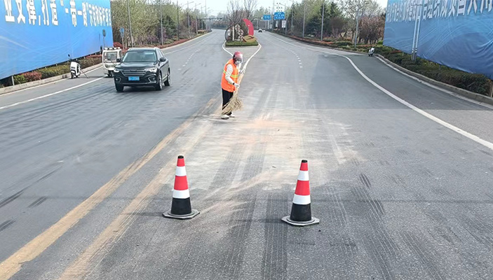 強化突擊重保潔。四月份以來完成園區(qū)大小突擊保障3次,完成橋梁排水孔疏通工作。針對管養(yǎng)轄區(qū)域過往大型車輛大量石子拋灑、渣土遺漏實際情況,該公司分類處置,對癥下藥,對于此類拋灑頻率較高路段,采取增加作業(yè)人員、黨員突擊奉獻、人機結(jié)合清理等形式,保證路面整潔,消除安全隱患。