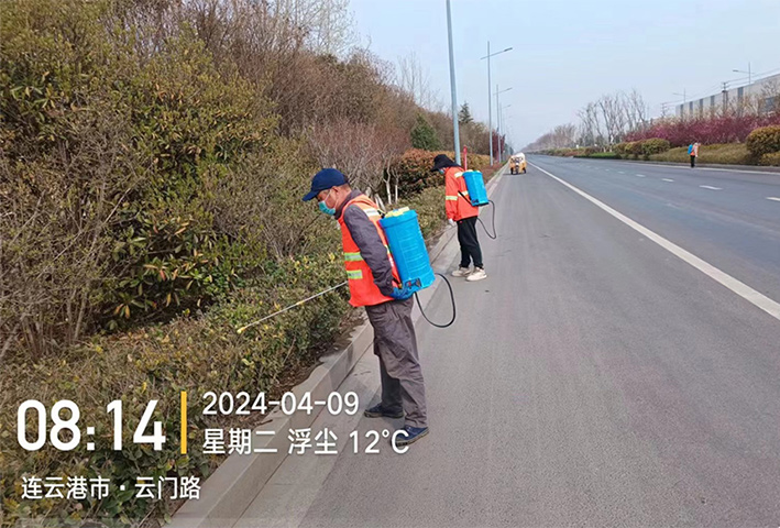 強化修剪重養(yǎng)護。該分公司以防為主,防治結(jié)合,全面開展春季病蟲害防治工作,對整個園區(qū)綠植面積 62萬平方進行全面施藥。序時開展園區(qū)綠化帶除草工作,四月上旬對園區(qū)內(nèi)云港路,祥和路,金港路綠地雜草、落葉清理,清理面積25萬平方。積極打造綠化養(yǎng)護樣板路。突出祥和、云港重點路段,綠化2班全面對祥和3期利用4天時間對所轄綠化帶采取人機結(jié)合全面除草,并根據(jù)苗木的長勢,在正常養(yǎng)護工作的同時,開展春季病蟲害防治。定期安排補水,日澆水量50余立方,有效的促進苗木生長,全面掀起大干二季度工作熱潮。(劉永)