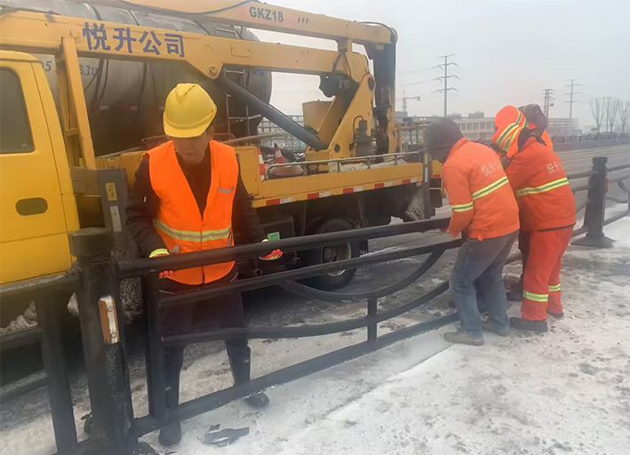 近兩日,因雨雪天氣,道路結(jié)冰濕滑,車輛行駛過程中發(fā)生意外,造成港前大道、海濱大道、228國道等地段發(fā)生多起道路護(hù)欄等設(shè)施損壞情況。收到信息后,市政分公司道路養(yǎng)護(hù)人員迅速反應(yīng),在班長孫寬成帶領(lǐng)下,隊(duì)員們頂風(fēng)冒雪第一時(shí)間趕赴現(xiàn)場。