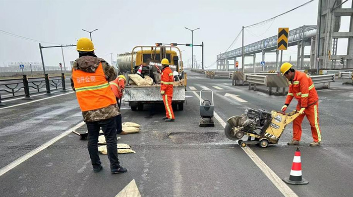 ? ? ? 連日來(lái),為了保障新區(qū)道路平穩(wěn)暢通,市政分公司組織專業(yè)力量,分組開(kāi)展坑洞修補(bǔ)。市政維修人員加班加點(diǎn)先后對(duì)港前大道、徐新路、海濱大道、石化區(qū)陬山路等重點(diǎn)道路大小坑塘30余處破損部位進(jìn)行修補(bǔ)。
