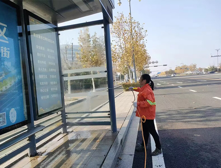 該分公司百余名一線保潔人員,無懼徐圩初冬低溫天氣,道路兩側(cè),公交站臺(tái),三人一組,兩人一對(duì)在班長帶動(dòng)下,揮動(dòng)手中大掃把,上下擺動(dòng)拖把,人工清掃輔道落葉2000多米長,清洗站臺(tái)30多個(gè),徒手擦洗座椅60多個(gè),清倒果皮箱200多個(gè);突擊轉(zhuǎn)運(yùn)園區(qū)施工垃圾300袋,有力保障途經(jīng)道路環(huán)境整潔靚麗;大型車輛整裝待發(fā),持續(xù)三天加班加點(diǎn),7時(shí)許準(zhǔn)時(shí)加滿車廂用水,安全有序到達(dá)指定路段,20臺(tái)大中型清掃沖洗車輛作業(yè)臺(tái)班達(dá)4個(gè)以上,為成功完成此次大保障有力彰顯機(jī)械強(qiáng)大功能。