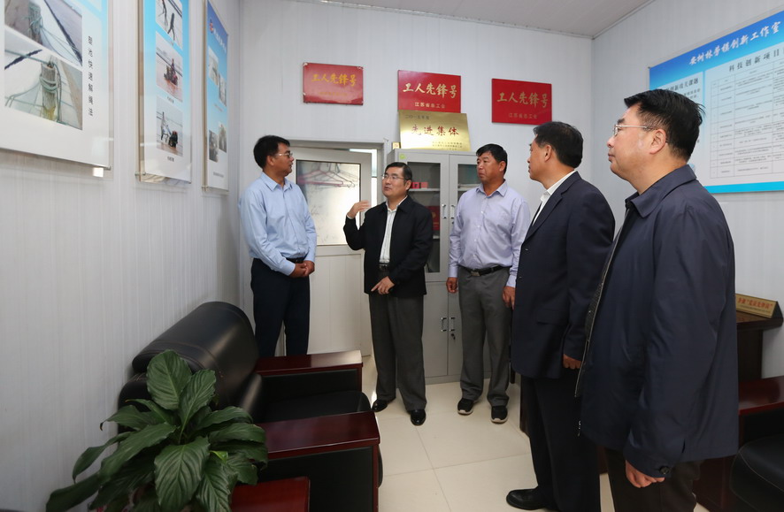 演出結(jié)束后,陳健在戴鴻鳴等人的陪同下,看望了江蘇省勞動模范安樹林。