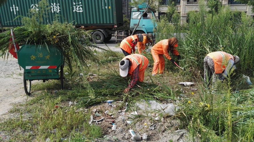 在昌圩湖環(huán)湖路南側一處公共廁所處,裕升養(yǎng)護公司20多名環(huán)衛(wèi)保潔工人正在清理公廁周邊的雜草、建筑垃圾,有的在割草、有的在搬磚、有的在推車,一個個汗流浹背,忙得不亦樂乎。正在現(xiàn)場忙碌的保潔大隊長劉保軍對筆者說:“這一塊段還沒有交給我們養(yǎng)護,一直無人管理,雜草叢生,成為建筑、裝修垃圾的堆放地,根據(jù)開發(fā)區(qū)創(chuàng)衛(wèi)環(huán)境衛(wèi)生無死角要求和華茂公司生產技術部門指令,我們裕升養(yǎng)護公司承擔這一區(qū)域環(huán)境衛(wèi)生突擊整治任務,從綠化保潔班組抽調20多人來搞突擊,大家面對天氣炎熱、工作量大、清理困難等因素,發(fā)揚不怕吃苦、敢打硬仗的華茂精神,奮戰(zhàn)在突擊現(xiàn)場,每個人都汗流不止,工作服全被汗水浸透,昨天我們已在這里整整干了一天,由于垃圾量大、雜草面積大,我們動用了裝載機等機械設備,運雜草的三輪車跑近百趟,清理建筑、裝修等垃圾數(shù)十噸。估計今天下午能夠全部結束?!?/span>