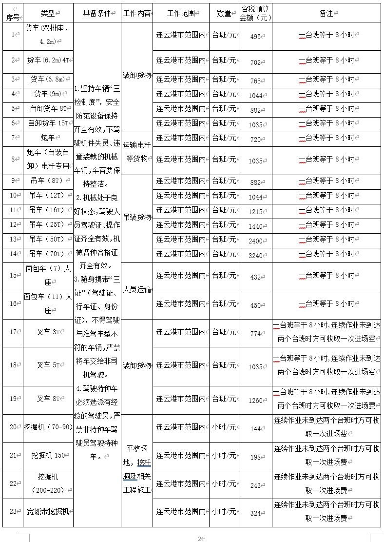 2.采購(gòu)內(nèi)容:連云港工投集團(tuán)供電工程分公司機(jī)械、車輛租賃