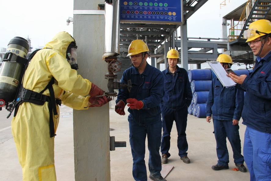 創(chuàng)新競賽項(xiàng)目,提升員工技能水平。該公司結(jié)合生產(chǎn)實(shí)際,完善比賽內(nèi)容,創(chuàng)新比賽形式,提高比賽難度,分別在雙氧水、氯化芐、苯甲醛、倉儲、檢測和維保6個重要操作崗位分組進(jìn)行理論和操作比賽。在往年員工勞動技能競賽方案的基礎(chǔ)上,增加換濾袋、苯甲醛包裝等競賽項(xiàng)目,其中叉車、滾桶和搶險救援競賽項(xiàng)目擴(kuò)大了參賽范圍。此外,應(yīng)急響應(yīng)、應(yīng)急處置和搶險救援項(xiàng)目不僅讓參賽員工更加熟悉防化服佩戴和呼吸器穿戴方法,還檢驗(yàn)了各級人員對突發(fā)事故的應(yīng)急救援實(shí)戰(zhàn)能力和協(xié)調(diào)程度。這些競賽項(xiàng)目有效提升了員工的操作技能水平、安全防范意識、應(yīng)急救援能力和隱患排查能力。