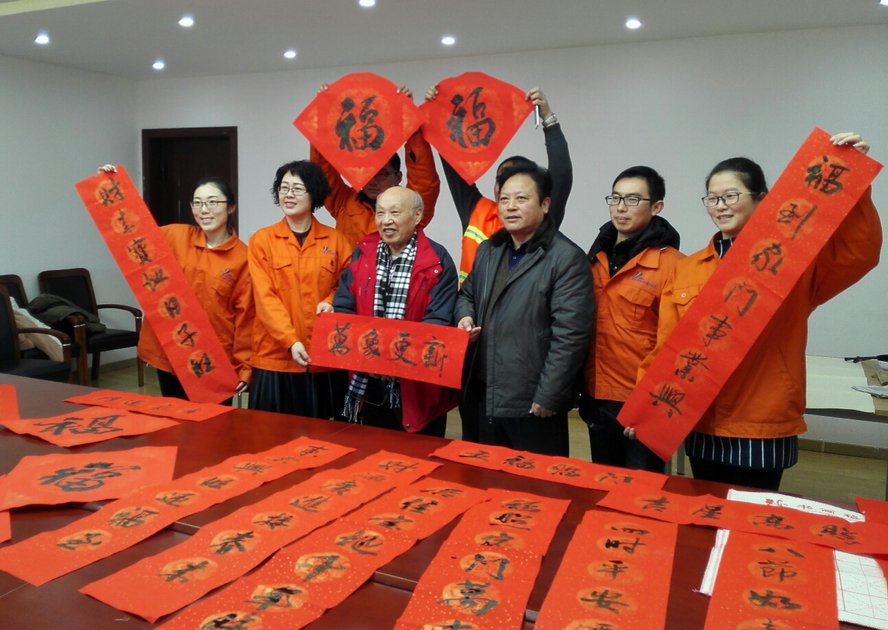 1月20日,連云港市雜文學(xué)會邀請陳鳳桐等3名知名書法家走進(jìn)華茂綠化工程公司,為一線環(huán)衛(wèi)職工寫春聯(lián),送上濃濃的新春祝福!