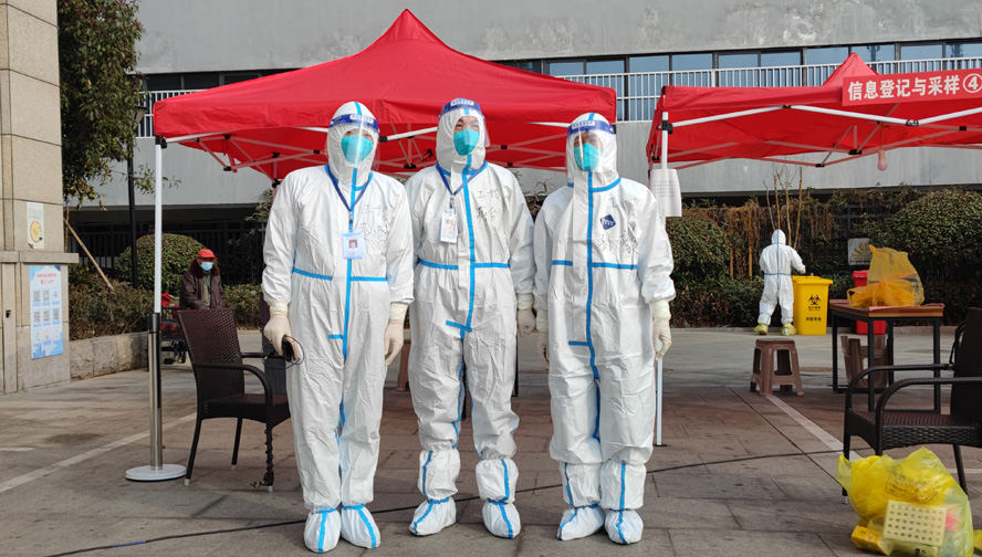 資產(chǎn)管理公司資產(chǎn)經(jīng)營部蔣劍虹部長,作為公司骨干老同志,第一時間挺身而出,主動響應(yīng)集團(tuán)黨委志愿者招募需求,不顧個人安危投身社區(qū)志愿服務(wù)。與醫(yī)護(hù)人員一同參與核酸采集登記工作。他連續(xù)兩日頂住壓力與困難,身著防護(hù)服,從早上6點開始,連續(xù)奮戰(zhàn)10多個小時,在脫下防護(hù)服的那一刻體能已經(jīng)達(dá)到了極限。他謙虛的說道:“我只是做了其他“黃碼”同志想做卻不能做的事情罷了”。