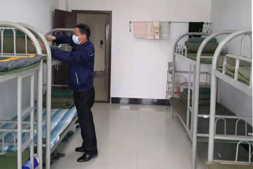 3月5日清晨,正在公司值班的他,突然看到手機(jī)推送的“連云港出現(xiàn)新冠肺炎確診患者”消息,腦袋“嗡”一下就繃緊一根弦,老黨員的敏銳告訴他:要立即行動(dòng)起來(lái)!他與安全管理部通力合作,在最短時(shí)間內(nèi)統(tǒng)計(jì)完公司目前在崗職工人數(shù),協(xié)調(diào)車(chē)輛送在崗職工到政府指定地點(diǎn)進(jìn)行核酸檢測(cè)。同時(shí),他一刻也不停歇,迅速擔(dān)起后勤保障的職責(zé),多方聯(lián)系采購(gòu)瓜果蔬菜等食材,保障職工能夠吃得飽;當(dāng)?shù)弥糠謫T工需要留宿單位時(shí),他立即想辦法騰出部分辦公室作臨時(shí)宿舍,購(gòu)買(mǎi)被褥、洗漱用品等生活必需品,保障職工能夠睡得暖。在這一天中,他的手機(jī)似乎就沒(méi)放下過(guò):“朱師傅,您那邊情況怎么樣?能到單位上班為職工做飯嗎?”“您好,您好,我是神特的,我這里需要煤氣做飯,您能送些煤氣過(guò)來(lái)嗎?”“您好,現(xiàn)在還有口罩、消毒液等防疫物資嗎?能不能送些到神特,感謝您的幫忙!”一個(gè)個(gè)問(wèn)題,在他手里迎刃而解,為在崗職工筑起一道堅(jiān)實(shí)的后勤保障防護(hù)墻。