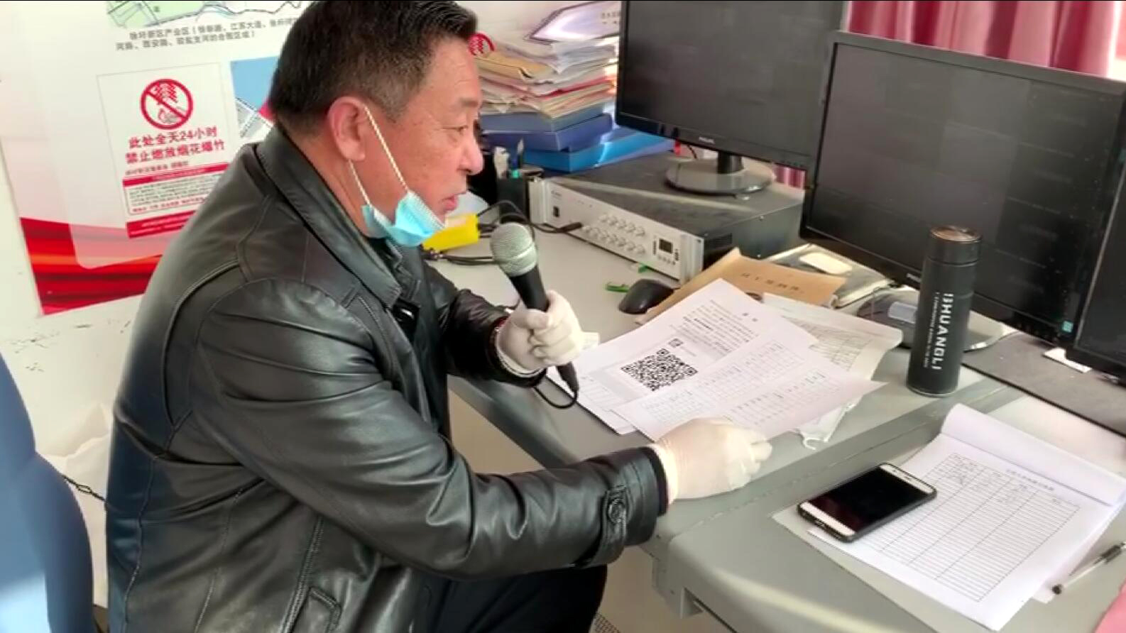 “居家不出門、安全有保證,每天勤洗手、病毒不找你”“陳先生、王阿姨、崔某某您好!您需要的生活用品、藥品、快遞到了,請(qǐng)到大門口,麻煩出來(lái)取一下,祝您們健康平安”。每天上午10時(shí),當(dāng)過(guò)工長(zhǎng)的孫大軍用上了久違的大喇叭,標(biāo)準(zhǔn)的老鹽場(chǎng)“普通話”,溫馨真誠(chéng)的“防控宣言”,讓居家隔離人員感受到了組織的溫暖,并架起了一座隔離不隔心的“連心橋”。