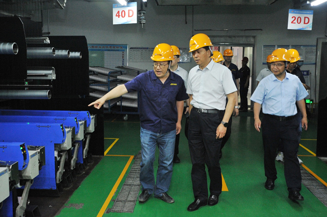 2021年6月23日下午,賈伊生常委領(lǐng)導(dǎo)一行來到氨綸公司指導(dǎo)調(diào)研,集團(tuán)常務(wù)副總經(jīng)理?xiàng)顕拢本]公司黨委書記胡傳法、總經(jīng)理張斌等領(lǐng)導(dǎo)陪同。