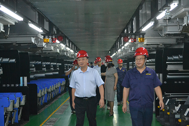 李永良一行人先后參觀了公司展廳、黨員活動室、抖音直播間、八期生產線、自動化包裝線等。參觀過程中,公司總經理張斌對我公司的發(fā)展歷程,差別化產品、戰(zhàn)略優(yōu)勢、等進行了詳細介紹。李永良對我公司低溫熱粘合氨綸、抗菌氨綸、驅蚊氨綸及氨綸生產全流程自動化、智能化生產線等給予了高度評價。希望公司進一步深入實施差別化氨綸及后道特色產品發(fā)展戰(zhàn)略的重大舉措,乘風破浪,再創(chuàng)行業(yè)輝煌。